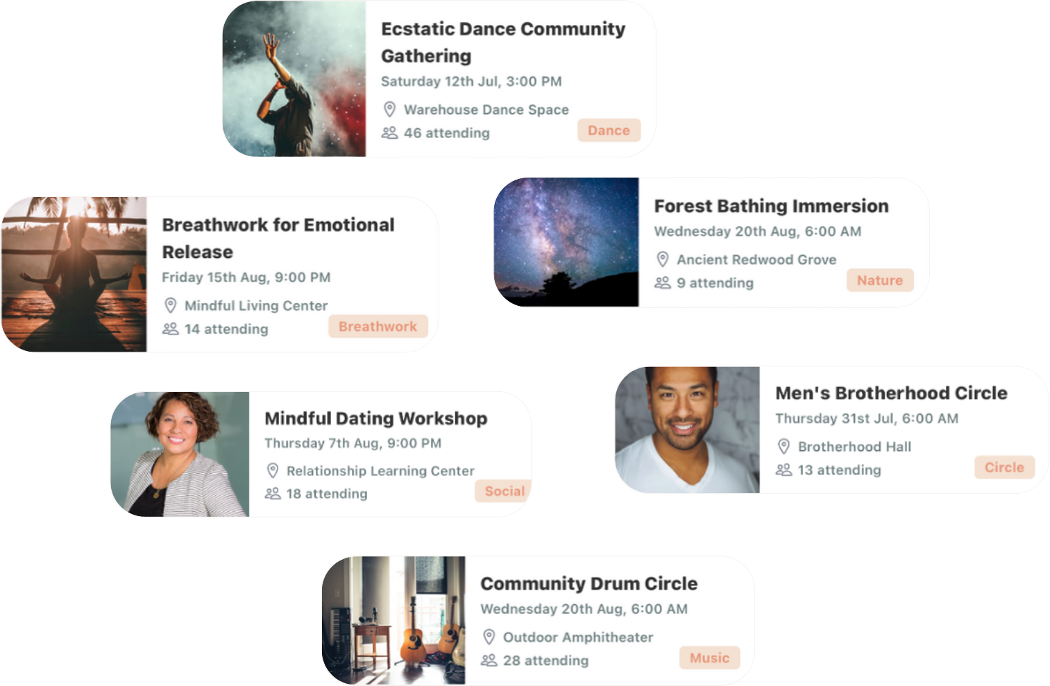 Home Menu Home About Us How It Works FAQ Sign Up Book Holistic Wellness Events With Verified Facilitators Your trusted place to discover and host wellness experiences Instagram Youtube-square Facebook-f Linkedin Spotify Menu Home About Us How It Works FAQ Sign Up